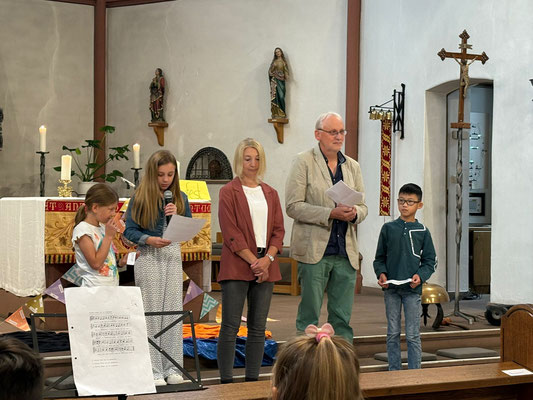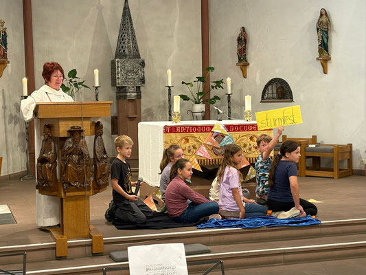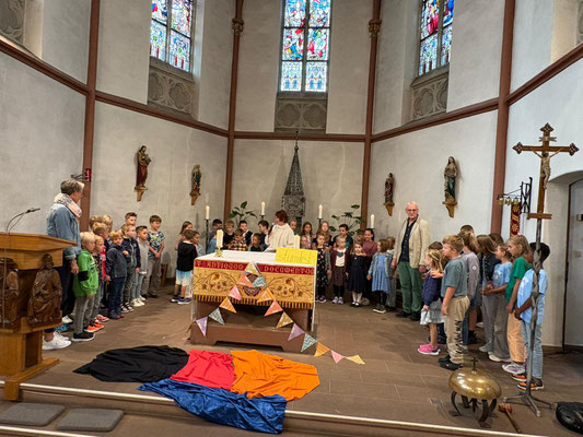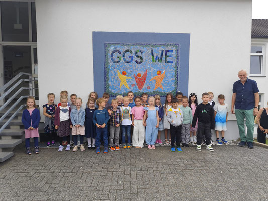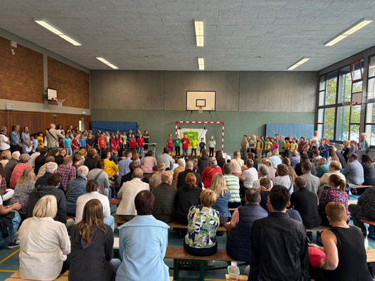 Mit großer Freude konnten wir am 28. August 2025 unsere neuen Erstklässlerinnen und Erstklässler begrüßen. Nach einem gemeinsamen Gottesdienst, der von der Klasse 4 und den Flötenkindern mitgestaltet wurde, begrüßten danach auch alle anderen Kinder der GGS WE unsere neuen Schülerinnen und Schüler in der Turnhalle mit unserem Schullied. Der Jahrgang 3 hatte zusätzlich als Willkommensgruß das Musical "Traum zu glauben" eingeübt.